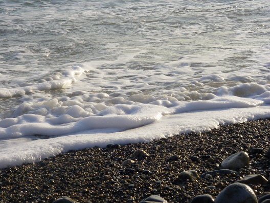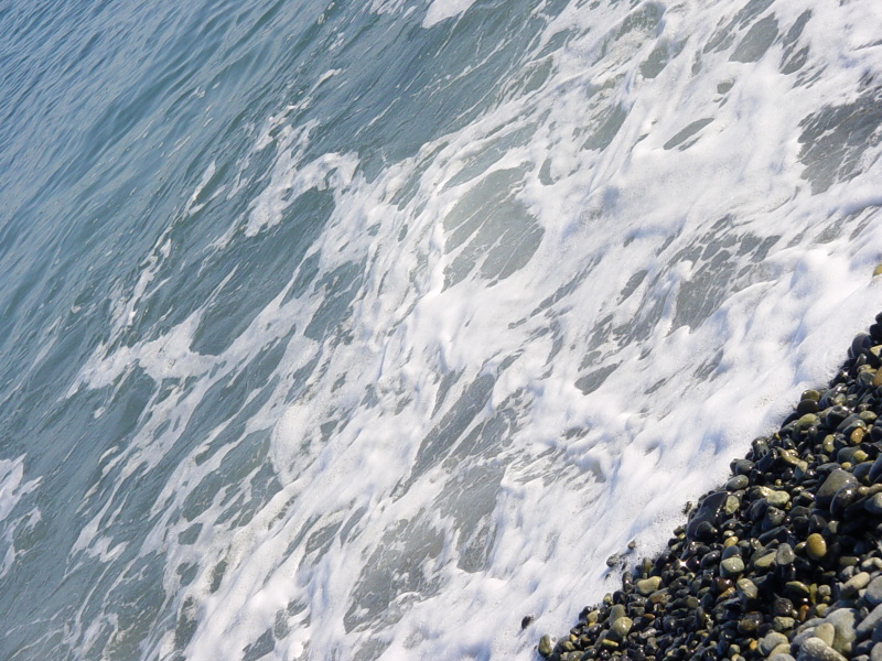 파도가 밀려왔다가 빠질 때면, 자갈 구르는 소리가 해변에 가득하다.