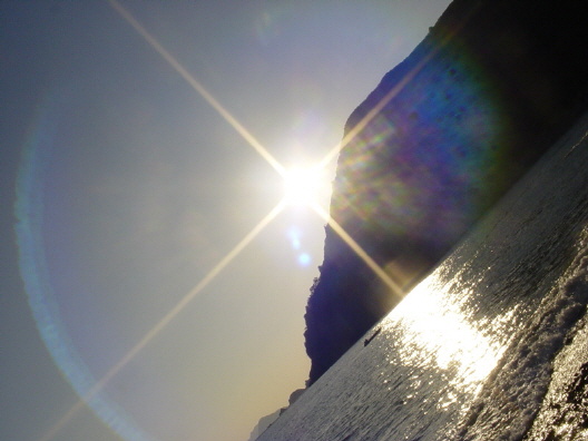 여차 언덕 – 일조 전의 황금빛 태양.