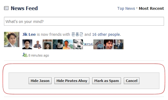 1. Hide Jason : Jason(글 쓴 사람)이 올리는 글은 앞으로 뉴스 피드(담벼락)에 나타나지 않게