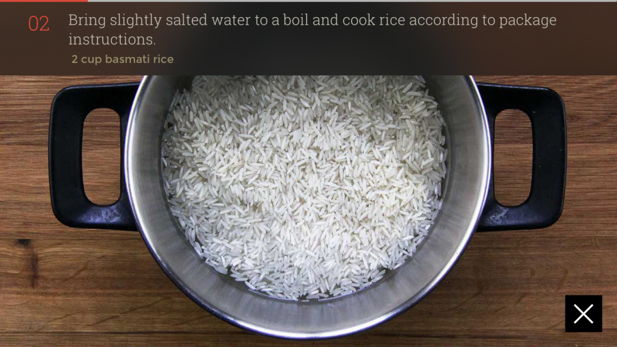- 약간의 소금물에 바스마티 쌀로 밥을 짓는다. (4인 기준, 전기 밥솥으로 40분 정도 소요)