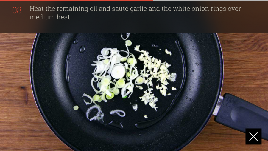 - 팬에 식용유를 두르고 마늘과 파의 흰부분을 중불로 익힌다.