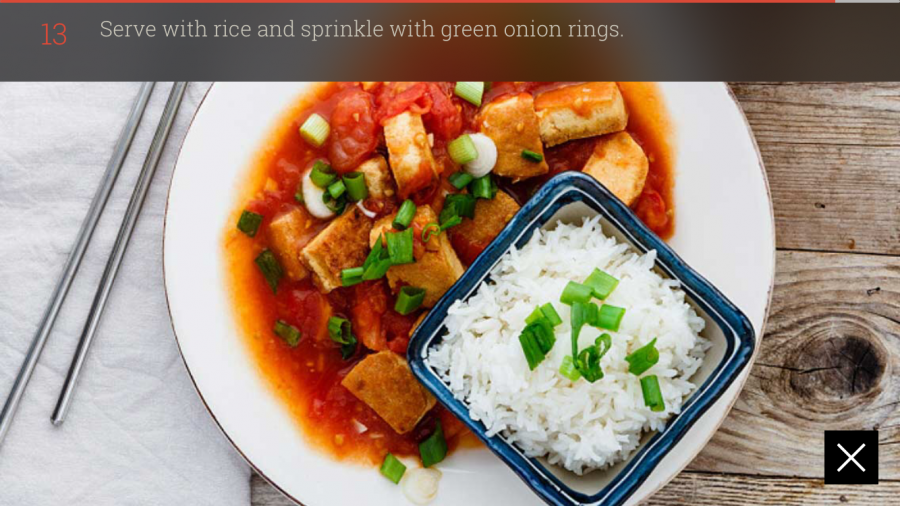 토마토와 칠리소스를 넣은 두부요리와 바스마티 쌀밥