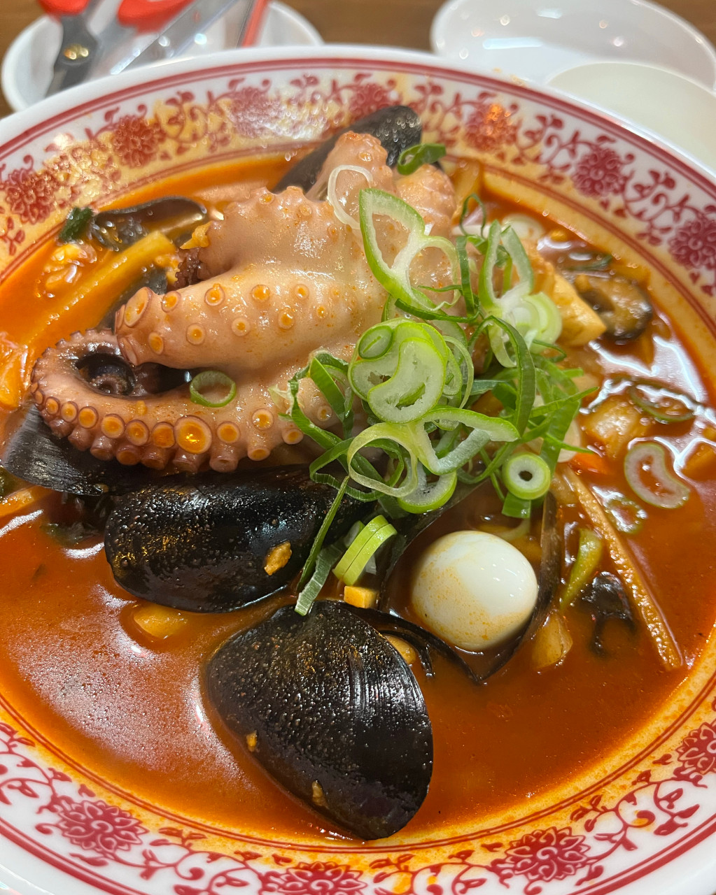 갑자기 비가 쏟아져 저녁은 매콤한 짬뽕으로 결정, 마침 숙소 근처에 개업한 지 얼마 안 된 중국집을 발견했습니다. 하이루.